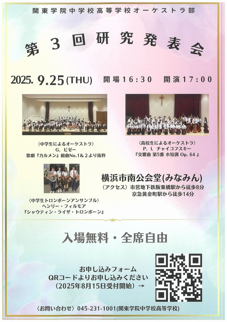 卒業生でオーケストラ部の高校2年生からご案内をいただきました。