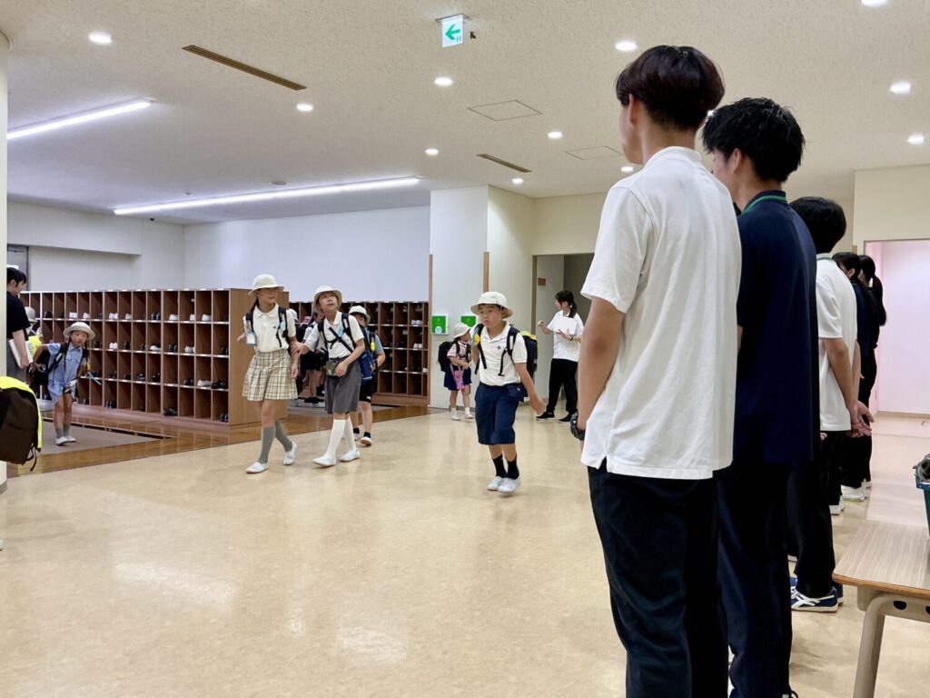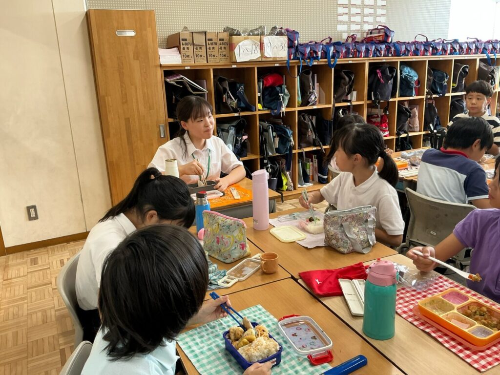 〈朝の下駄箱前での挨拶では、仲良くしてくれている1・2・3年生の児童が私を見つけると笑顔で手を振りながら挨拶してくれて、関係が深まっていることを実感しました。〉