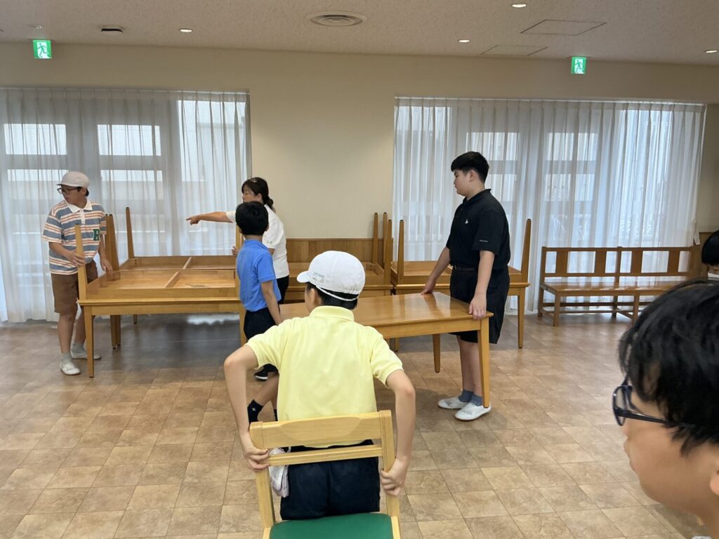 ステージ用のベストを着用し、みんなの入場を待ちます。