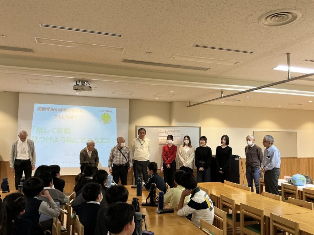 講師に来てくださったのは「アース・エコ」のみなさんと関東学院大学教授の佐野慶一郎先生、それに佐野ゼミの学生さんです。