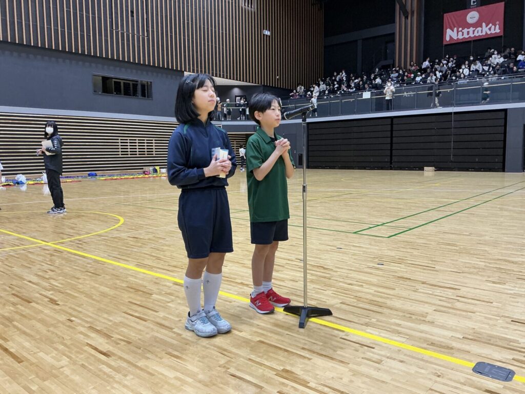 係の子どもたちはひとあし早くアリーナに降り、リハーサルをしています。