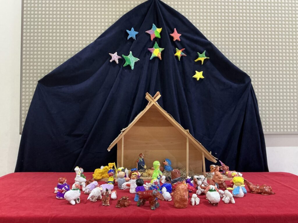 降誕を喜び集まってきた羊飼いや東方の学者たちが飾られています。