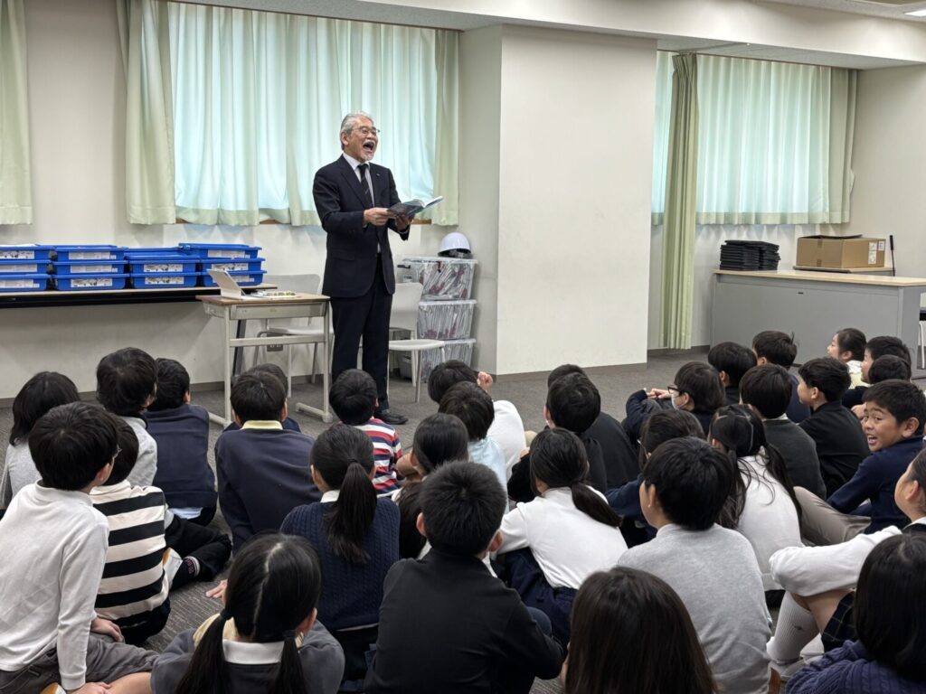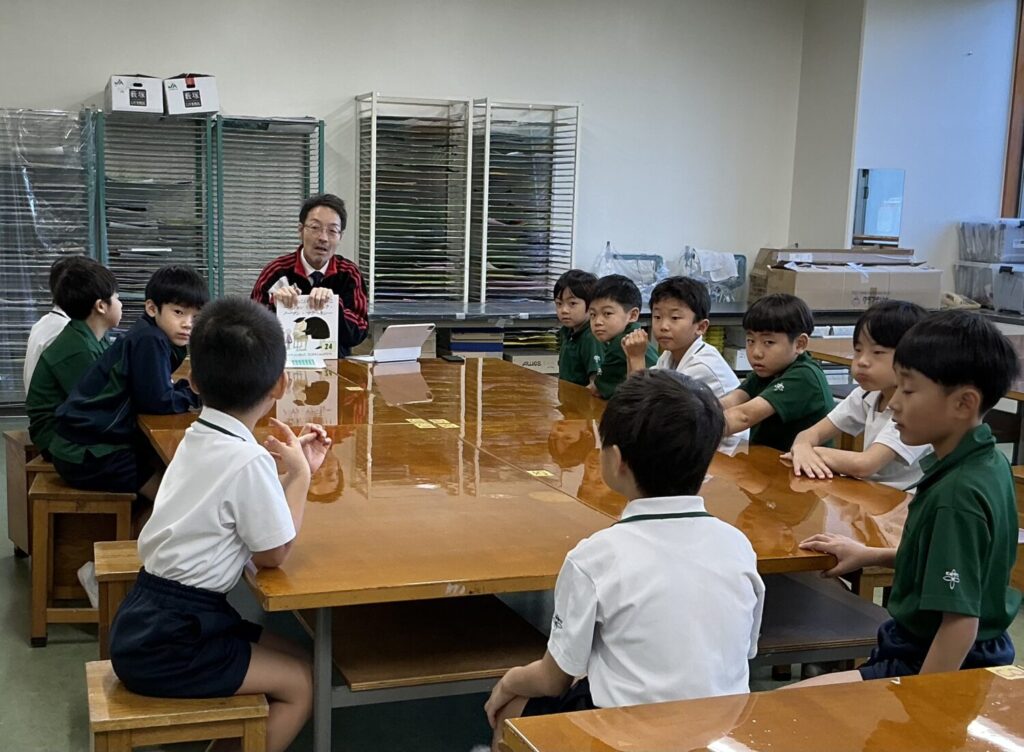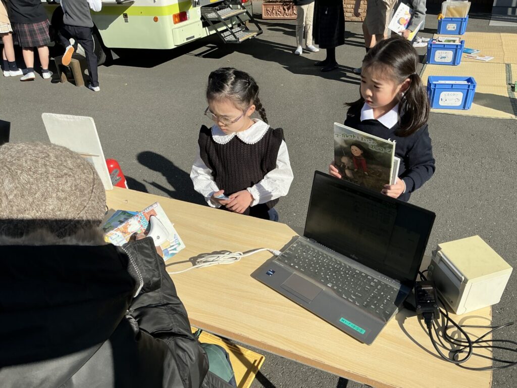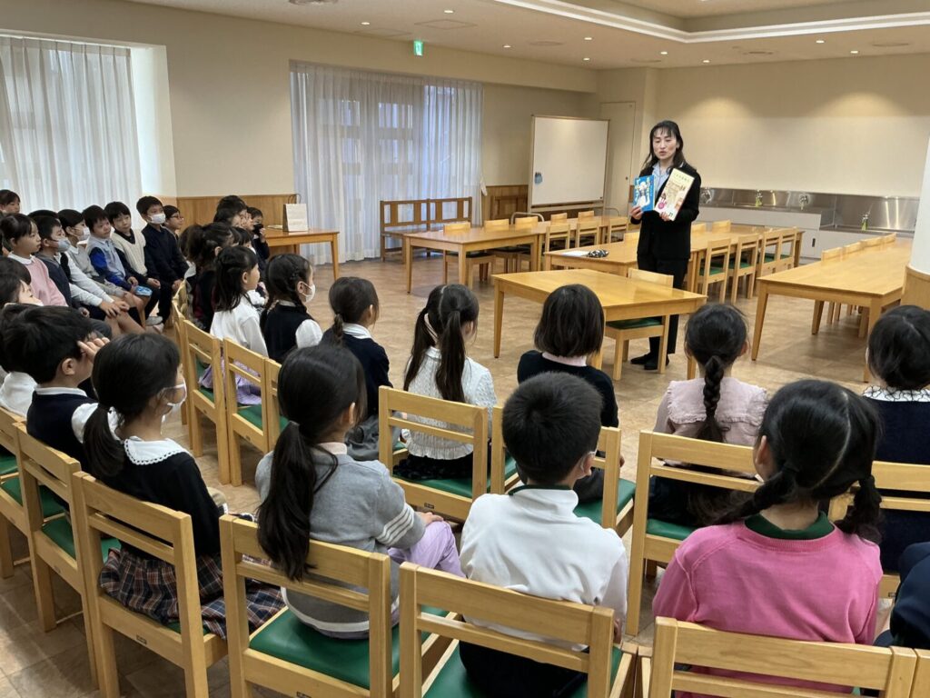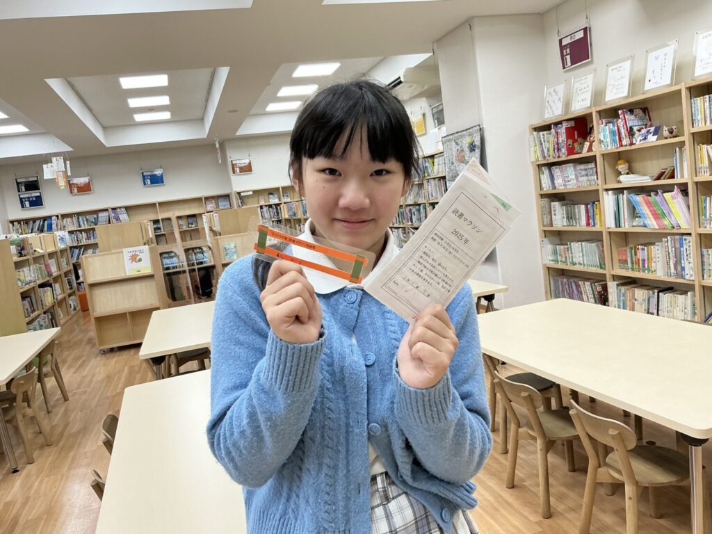 1・2年生には「へんてこもりシリーズ」で人気のまるぼのしおりを、3年生以上には点字のしおりをプレゼントしました。