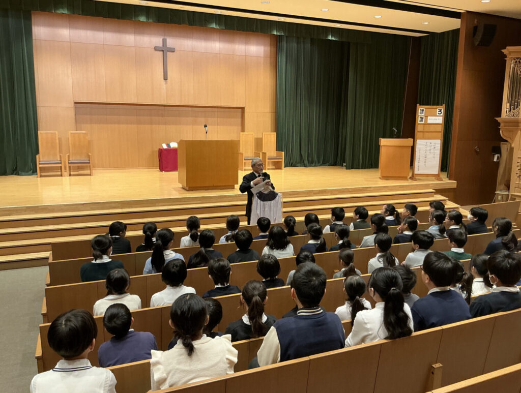 元校長の名取俊夫先生が来てくださり、クリスマスのメッセージを語ってくださいました。