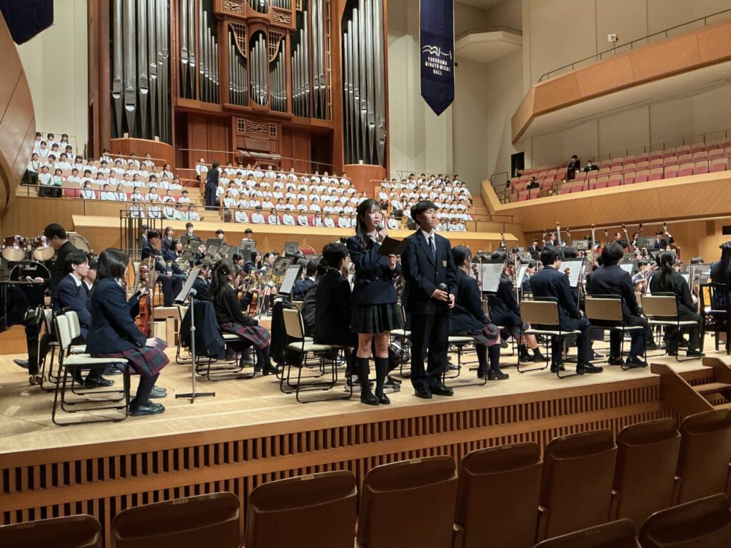 「わたしたちブラスバンドは、関東学院クリスマスコンサートに出演します。頑張ってきますので、応援よろしくお願いいたします」