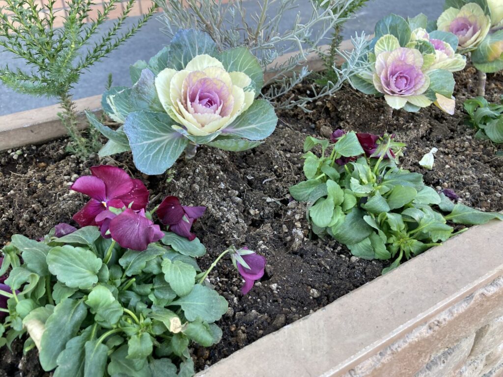 プランターには霜柱が。