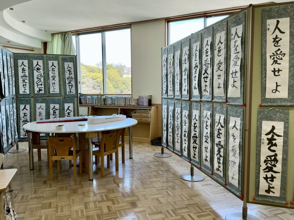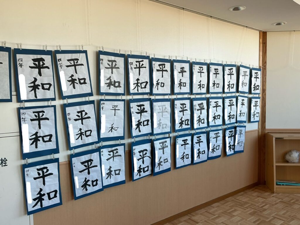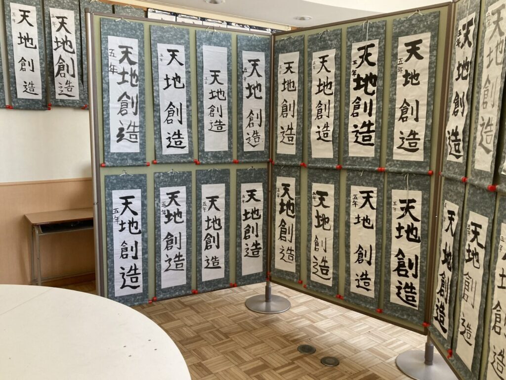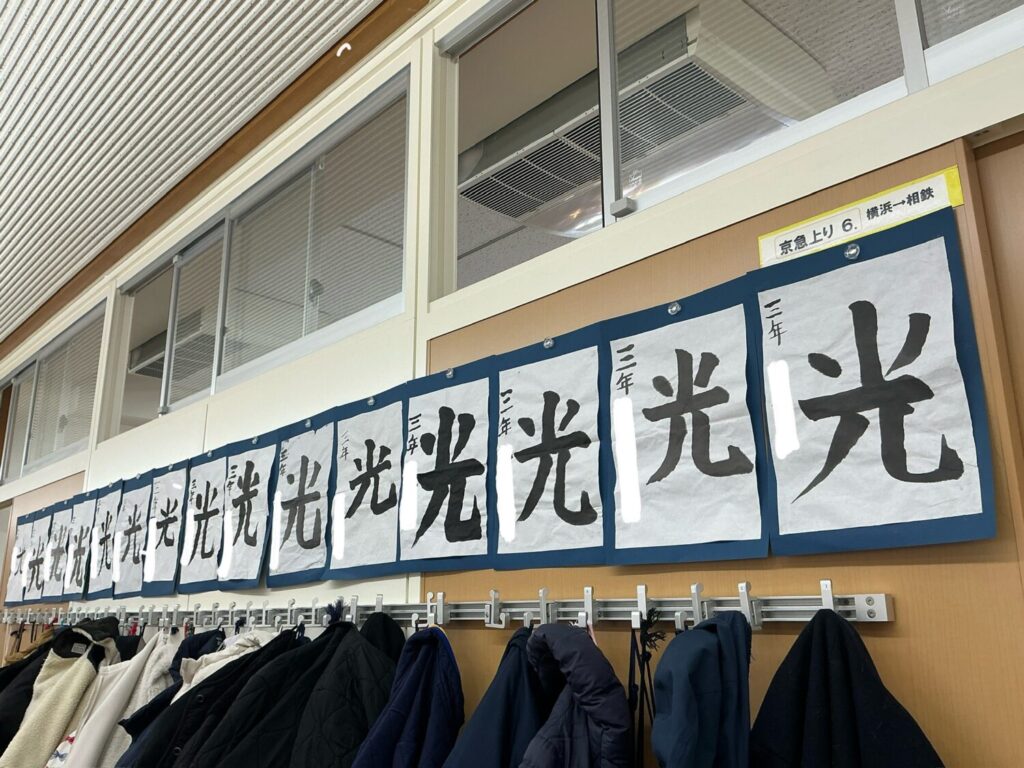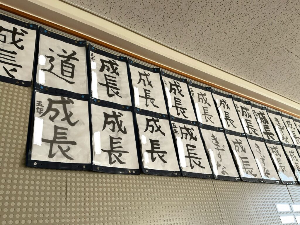 参観にあわせて書初めが展示してあります。