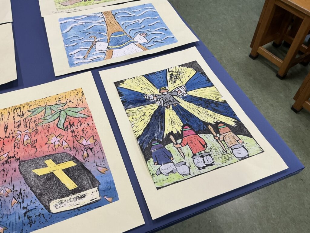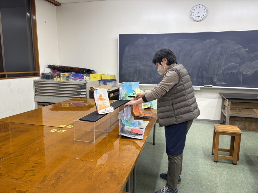 立体作品、平面作品、木版画、それぞれの工夫が見られます。
