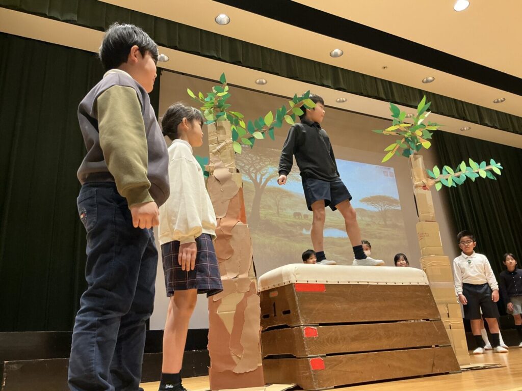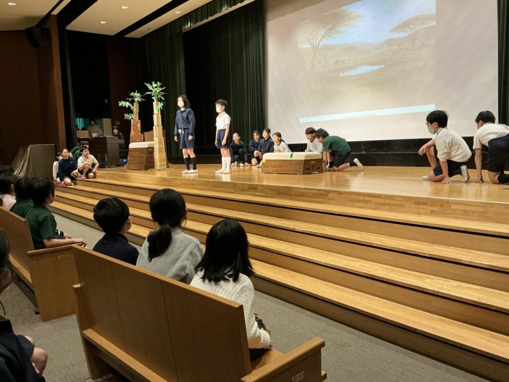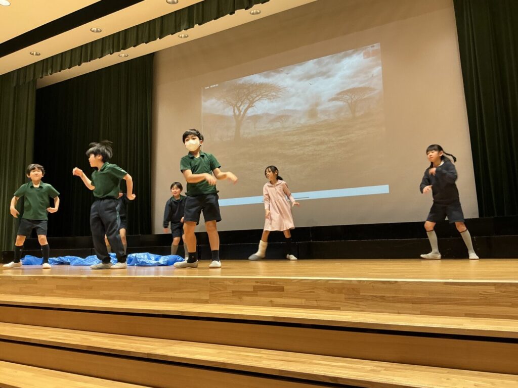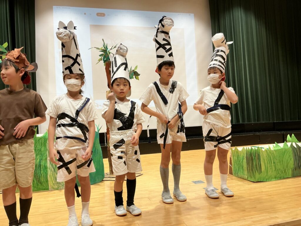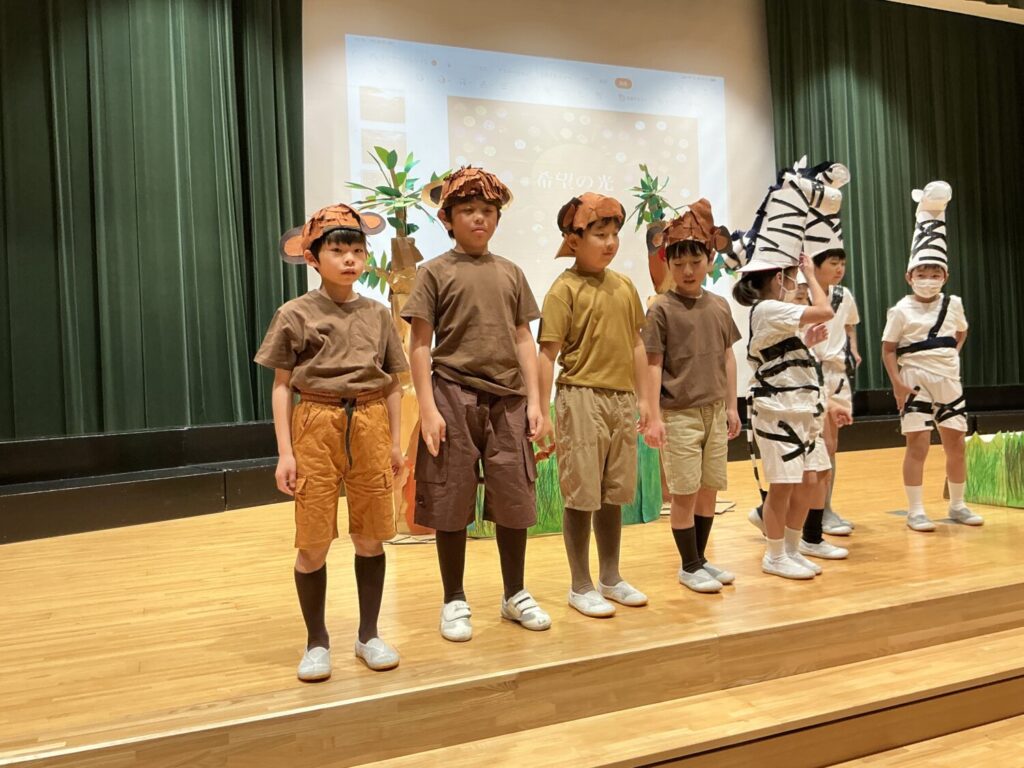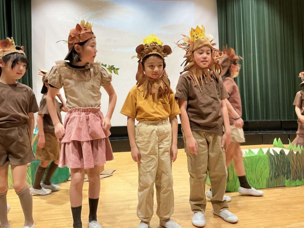 元気にあふれ仲間思いの3年生にぴったりな、サバンナに生きる動物たちの絆の物語をミュージカルに仕立てました。